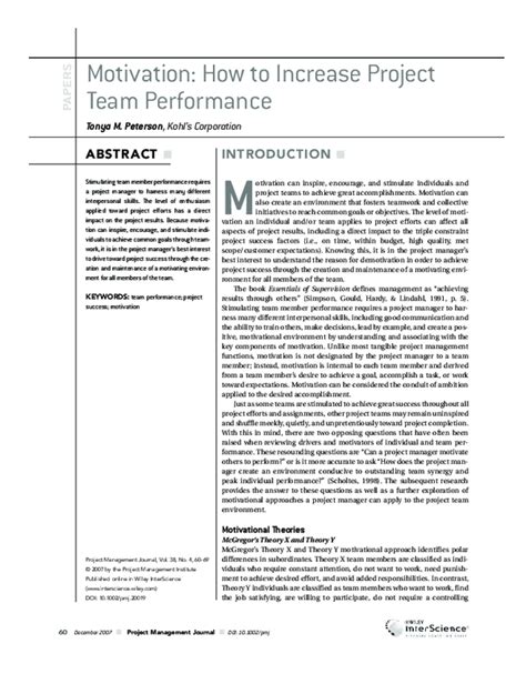 PTX - Read Online Motivation : How To Increase Project Team Performance PDF rtf ManyBooks